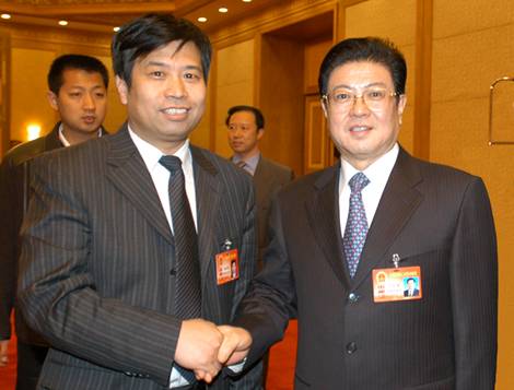 十屆全國(guó)人大四次會(huì)議期間,全國(guó)人大副委員長(zhǎng)王兆國(guó)與藥都集團(tuán)董事長(zhǎng)李曉恩親切交談并合影